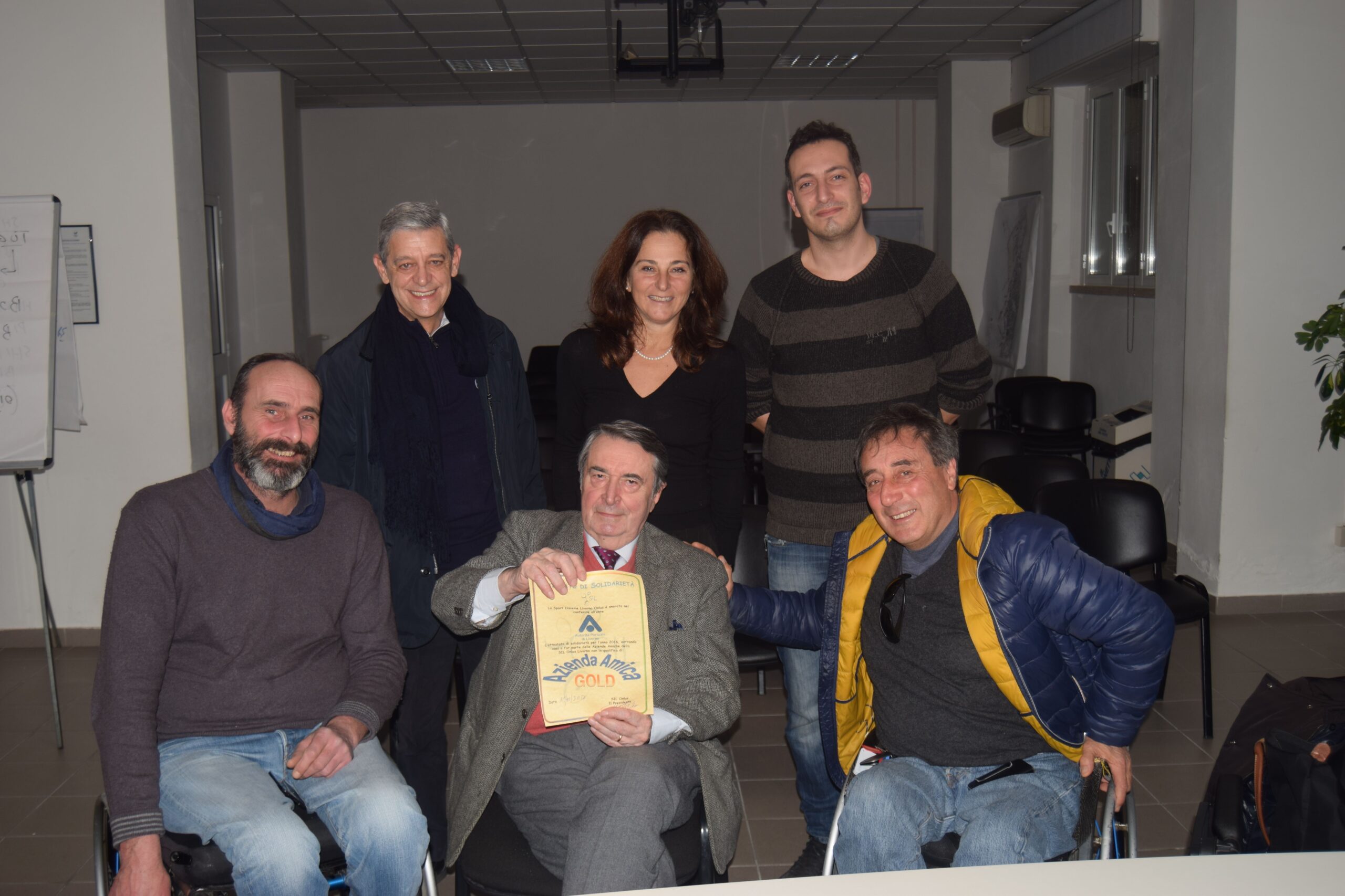 Stamani il presidente di Sport Insieme Livorno ha consegnato a Gallanti un attestato, un riconosicmento per aver sostenuto in questi anni i progetti sociali dell’associazione.
