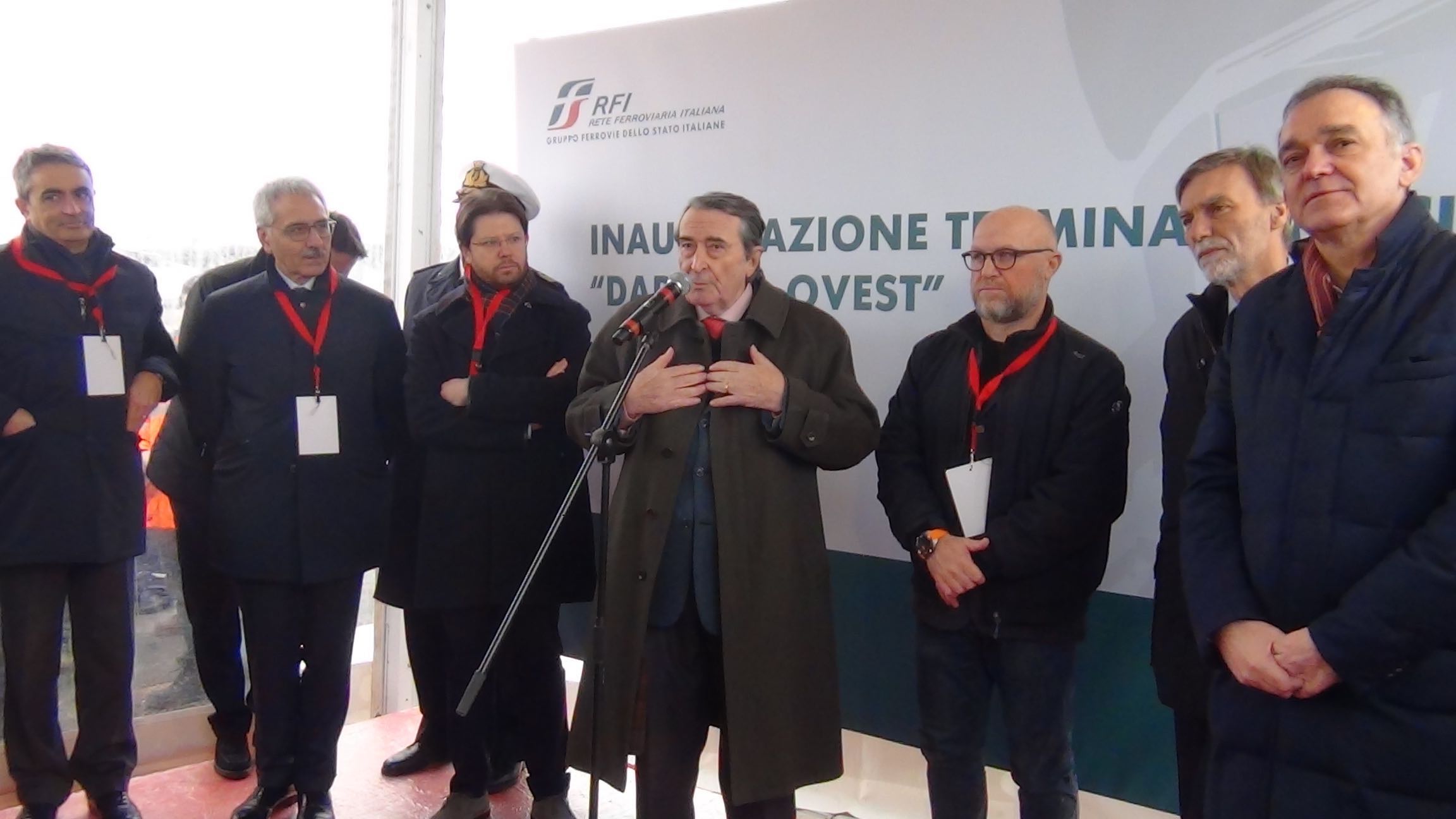 E’ il momento dei passaggi al microfono. Per primo tocca al sindaco Filippo Nogarin che chiede un nuovo rapporto fra porto e città (non è la prima volta che batte questo tema) anche perché, dice il primo cittadino, abbiamo l’esempio di scali marittimi olandesi, tedeschi e spagnoli dove “i sindaci guidano le Autorità portuali“. Poi riconosce che la struttura “che inauguriamo oggi è veramente importante, però l’abbiamo attesa 15 anni“. Infine chiede lo sblocco dei bacini di carenaggio. Una curiosità: quando Nogarin rivendica un maggiore coinvolgimento dei sindaci nelle Autorità, Nereo Marcucci, già presidente dell’Autorità portuale e attuale presidente di Confetra si fa il segno della croce. Cosa voleva significare? Forse l’amico Nereo aveva semplicemente recitato mentalmente un Rosario di ringraziamento alla Madonna di Montenero perché era finalmente giunto il momento dell’inaugurazione del raccordo ferroviario? Chissà.