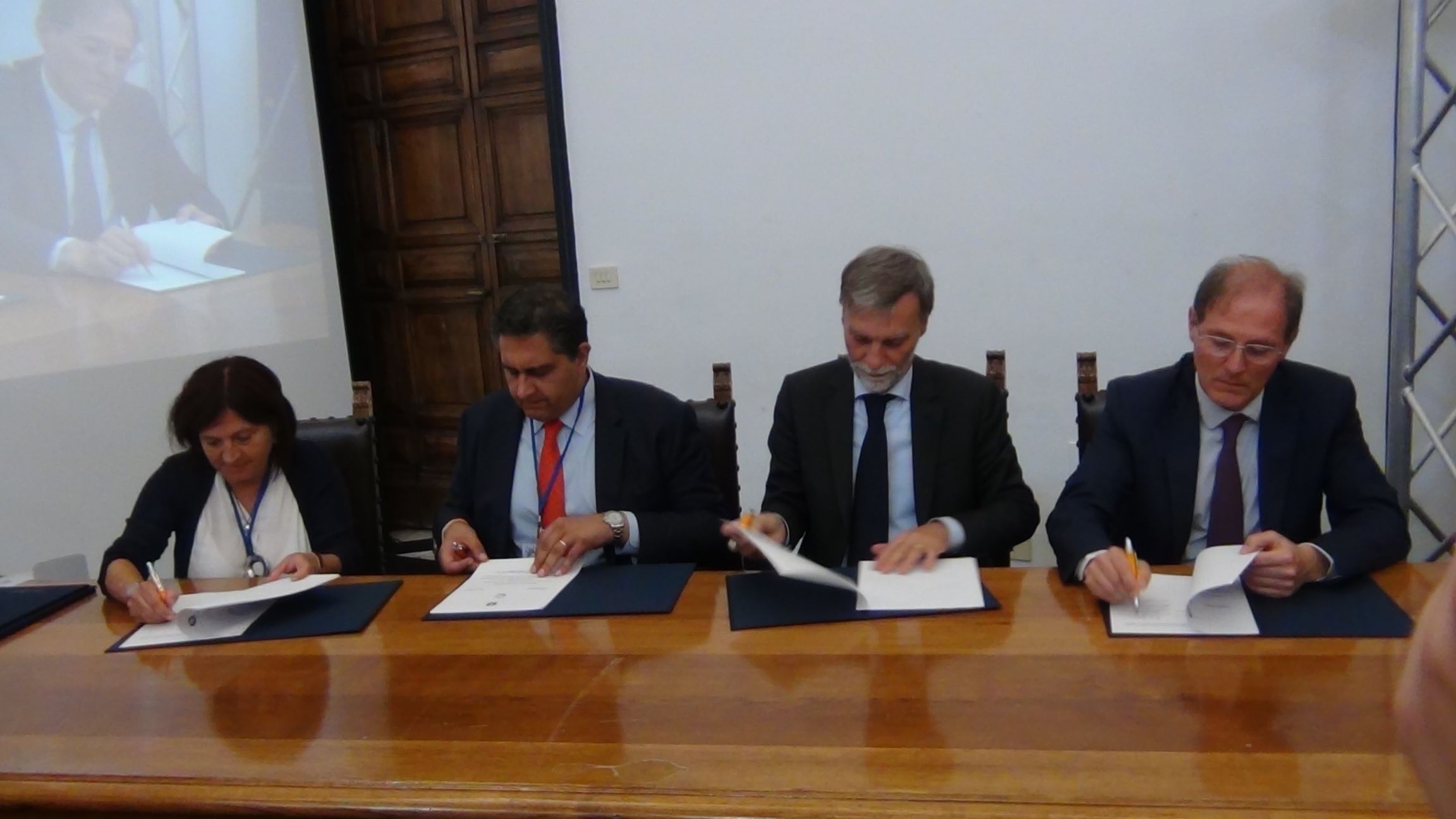 GENOVA- Gli Stati generali della logistica del Nord Ovest si sono riuniti stamani a Genova a Palazzo San Giorgio (Foto gallery). Obiettivo della grande riunione: la firma del Protocollo d’Intesa tra le Regioni: Liguria, Piemonte e Lombardia, dei rispettivi Governatori: Giovanni Toti, Sergio Chiamparino e Roberto Maroni, con i presidenti delle AdSP liguri, Paolo Emilio Signorini e Carla Roncallo. Alla firma del Protocollo d’intesa, come atto di indirizzo con obiettivi chiari e pianificati, non poteva mancare la controparte che in materia di finanziamento è colui che assicura l’impegno del governo: il ministro delle infrastrutture e dei trasporti Graziano Delrio.