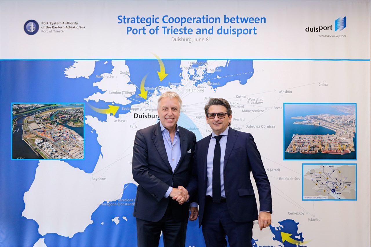 TRIESTE – Il porto di Trieste e la Duisburger Hafen (duisport), la società pubblica che gestisce il porto della citta tedesca di duisburg, rafforzeranno in futuro la loro collaborazione. Zeno D’Agostino, presidente dell’Autorità di Sistema Portuale del Mare Adriatico Orientale ed Erich Staake, presidente di duisport, hanno sottoscritto ieri nella città tedesca un accordo di collaborazione strategica.