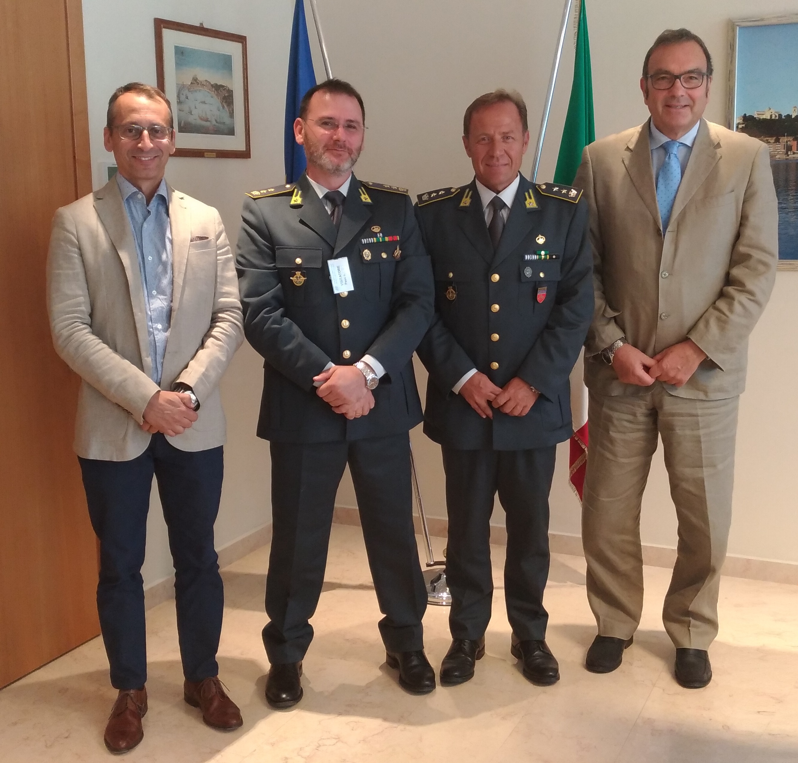 I Saluti del presidente Giampieri e del segretario generale Paroli al tenente colonnello Stefano Cavallo che subentra al tenente colonnello Dell’Anno alla guida della Stazione navale della Guardia di Finanza