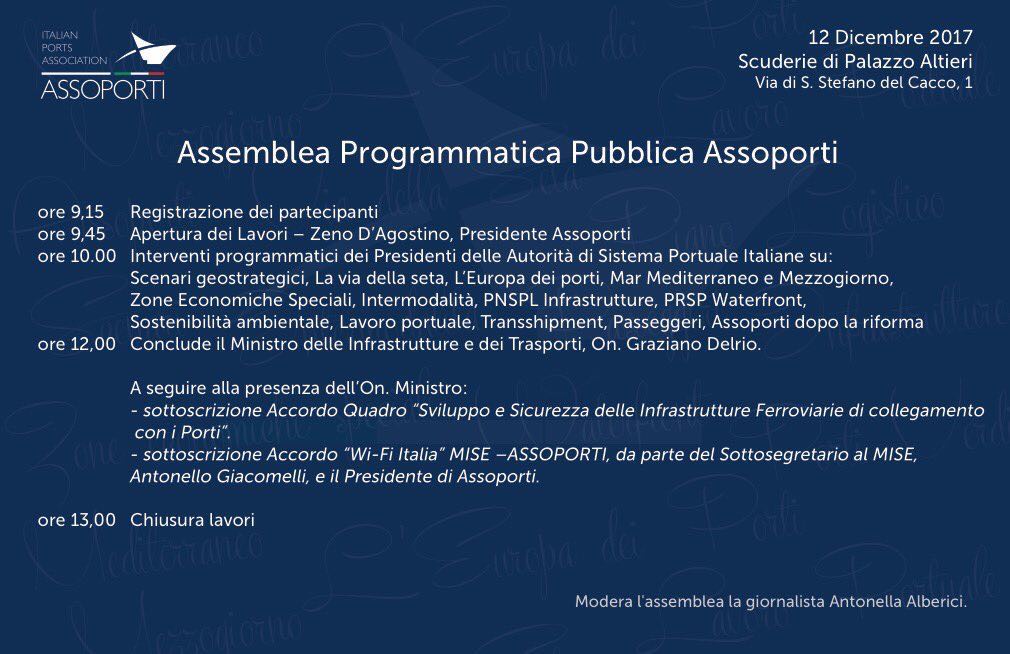 Segui la video registrazione dell’Assemblea Programmatica di Assoporti: 12 dicembre 2017