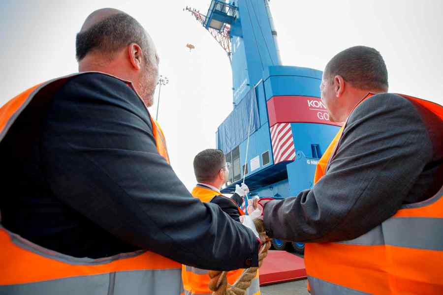 Sono durate due settimane le operazioni d’assemblaggio, che si sono svolte direttamente al terminal, dato le dimensioni della gru: 39 metri di altezza e fino a 51 metri di sbraccio massimo per un peso di oltre 450 tonnellate.