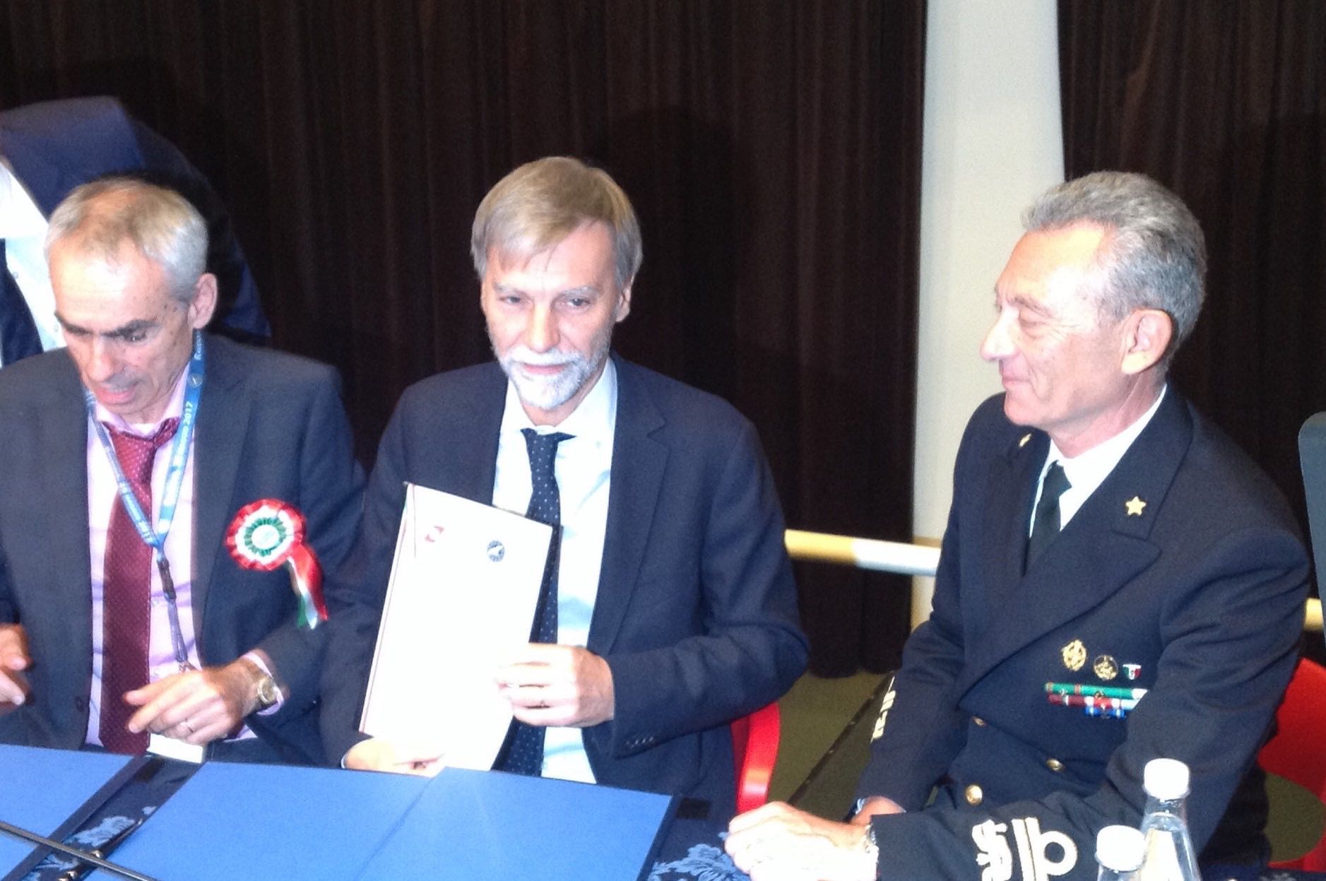 “Siamo un paese che deve vendere un prodotto, possiamo convincere i cinesi ma non facciamo entrare il cliente dal retrobottega, facciamo vedere la vetrina”. La vetrina che da lustro all’Italia a detta di Delrio è costituita dall’altissima professionalità dei servizi tecnico-nautici e degli operatori del porti ma non in ultimo “dall’altissima professionalità della nostra Guarda Costiera a cui abbiamo ridato la terza stella perché se la meritava” In risposta alla proposta di Duci di candidare la Capitaneria di Porto al Nobel per la pace 2018, il ministro risponde: “Il nobel per la pace non so se riusciremo a darglielo, ma hanno da parte nostra tutta la stima e l’affetto. Il motto dei ragazzi che partono per le missioni è -Anche oggi si dorme domani–”