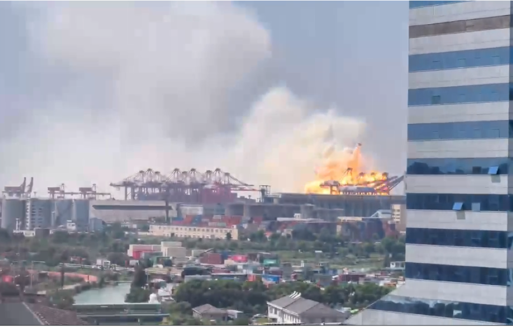 IL VIDEO – Violenta esplosione a bordo di una portacontainer nel porto cinese di Ningbo